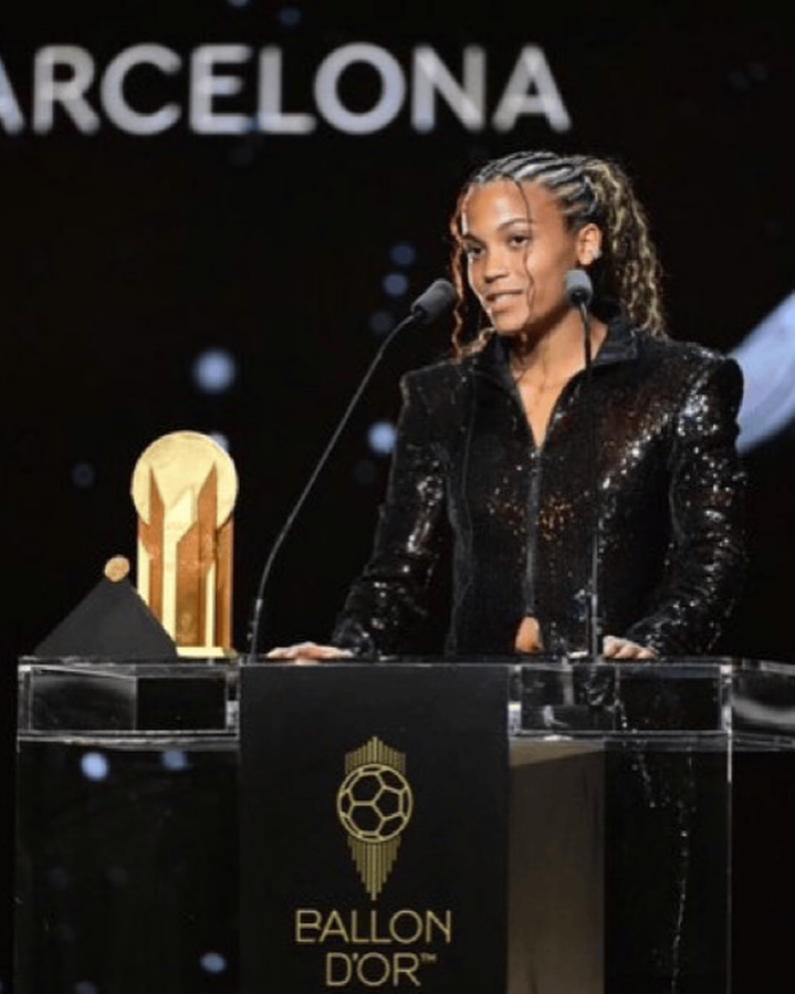 热烈祝贺艾塔娜-邦马蒂获得她的第三座金球奖,她是坚持与卓越的典范。很荣幸能够亲自将奖杯交到你手中。也要祝贺马里奥娜·卡尔登泰度过了一个非常出色的赛季。