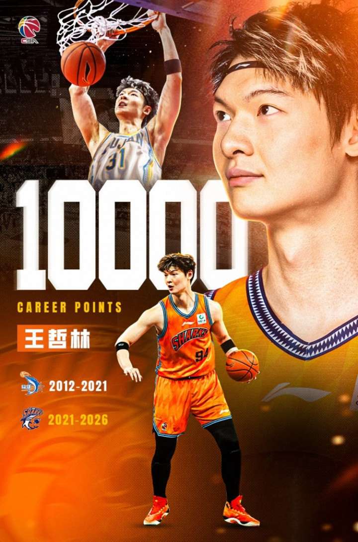 489场比赛! 10000分大关! CBA官博祝贺王哲林成为第6位万分先生