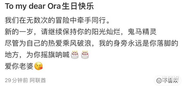 亲爱的,生日快乐。我们在无数次的冒险中牵手同行,新的一岁,请继续保持你的阳光灿烂,鬼马精灵。尽管为自己的热爱乘风破浪,我的身旁永远是你落脚的地方,为你摇旗呐喊,爱你老婆。