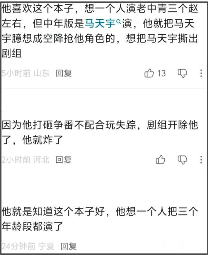 如今李明德引发的一系列风波彻底平息,他本人退了圈,参演剧集都换脸了,随着马天宇和《三人行》剧组再次提及李明德事件,网友猜测当初李明德的目的——他看上了马天宇在《三人行》中的角色,想要把人逼走自己演。